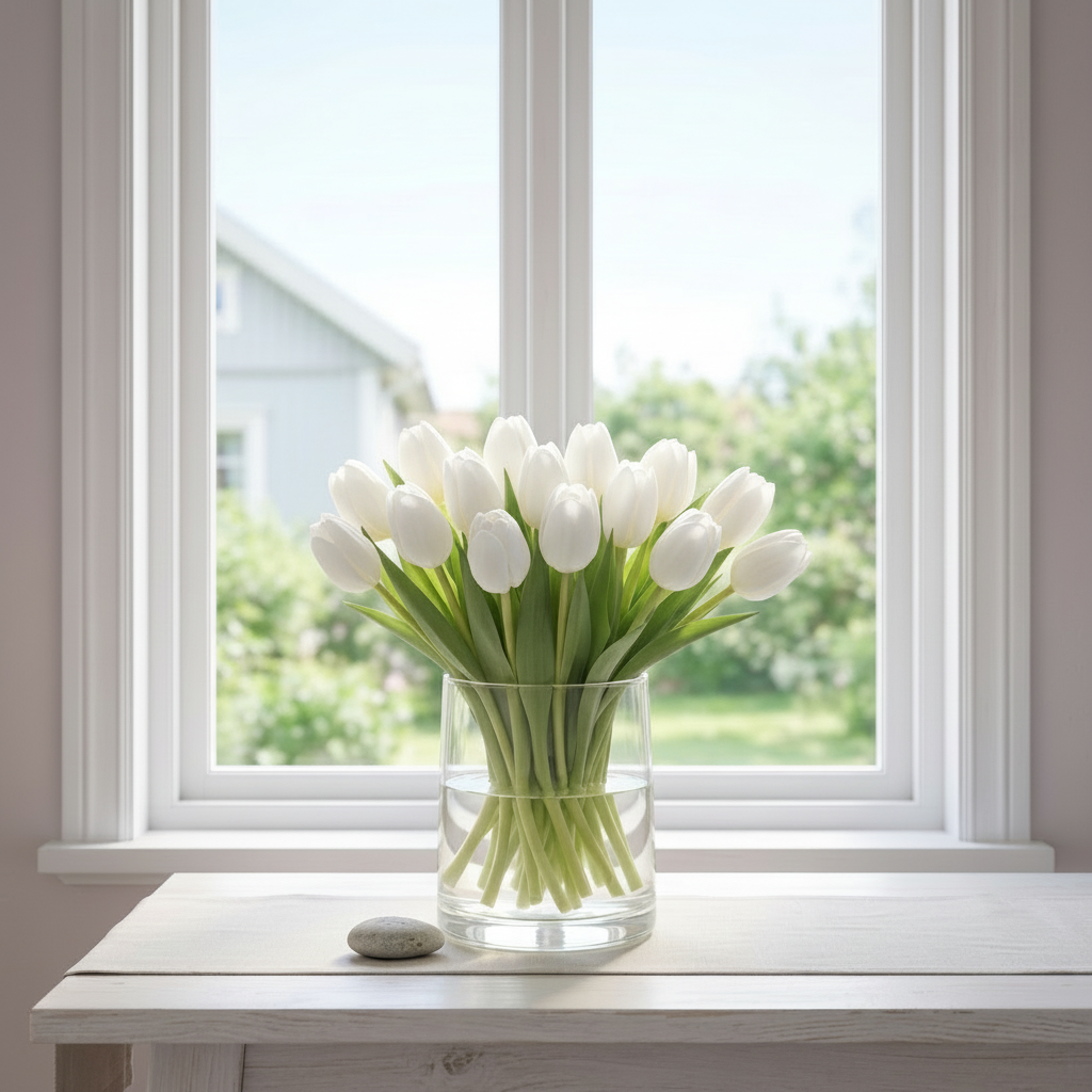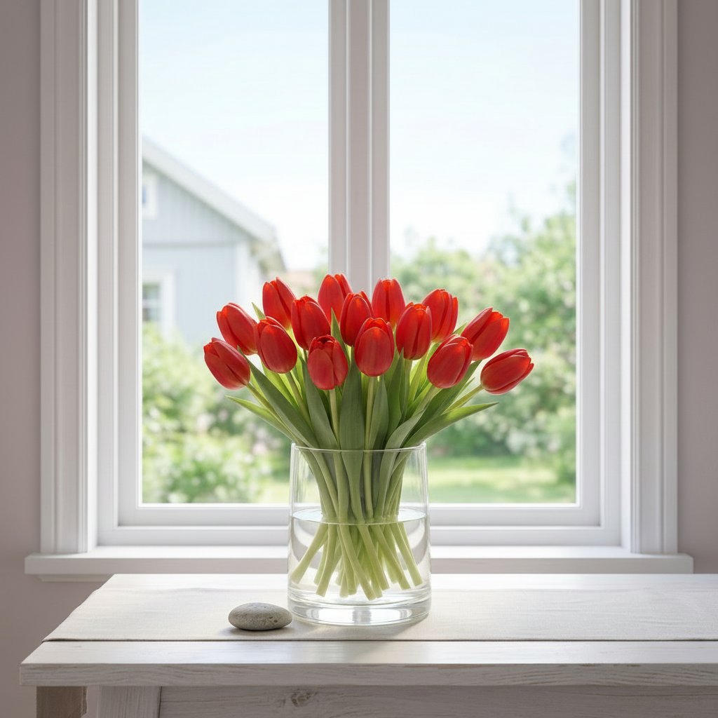 Det här är tulpaner för dig som vill ha ett hem som alltid känns levande, uppskattar kvalitet och realism – och vill slippa köpa nya blommor hela tiden.